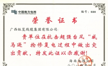 全國電線電纜產品質量監(jiān)管AA級企業(yè),全國重合同守信用單位,廣西“二十五”電線電纜產業(yè)重點扶持企業(yè),國家強制性產品CCC認證
